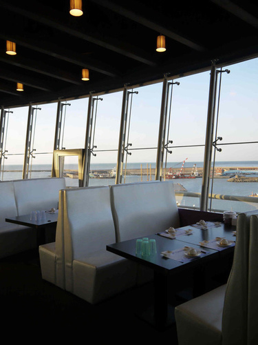 位於桃園縣大園鄉的竹圍漁港內, 斥資新台幣2000萬以大片玻璃打造而成的"航空港360度景觀餐廳"